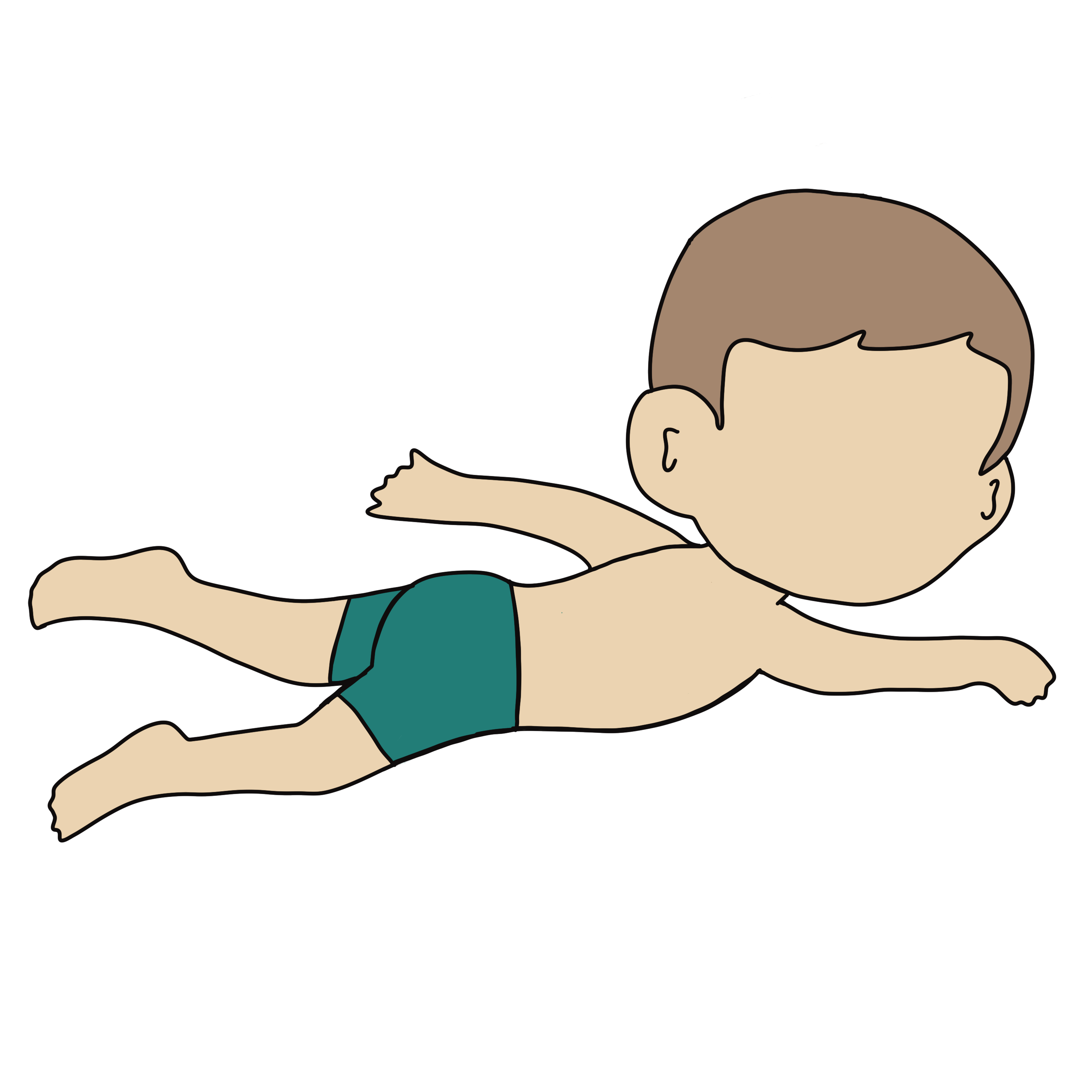 A infant from 6 months to around 12 months will learn how to hold their breath underwater, roll onto their back and float unassisted until someone rescues them. A child from about 1 year and older, will learn how to hold their breath underwater, swim head down, roll onto their back to float for rest and breath, then roll back over to resume swimming, repeating this pattern until they reach the side of the pool to get out or wait for help.